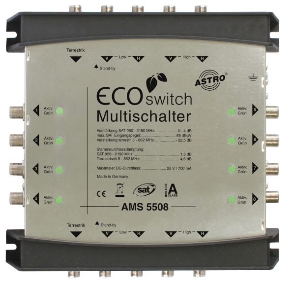 8 satellite levels + terrestrial signal, 8 receiver outputs