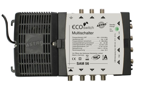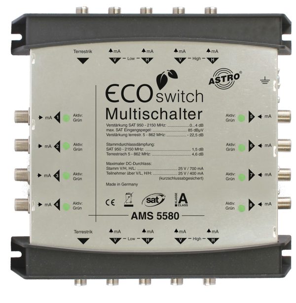 5 inputs for one satellite plus terrestrial, 8 receiver outputs