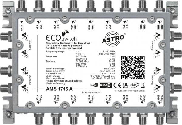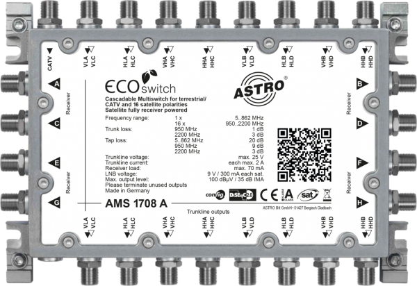16 satellite levels + terrestrial signal, 8 receiver outputs