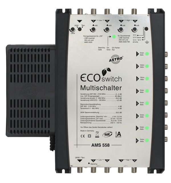 8 satellite levels + terrestrial signal, 12 receiver outputs