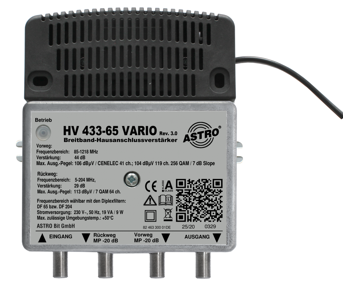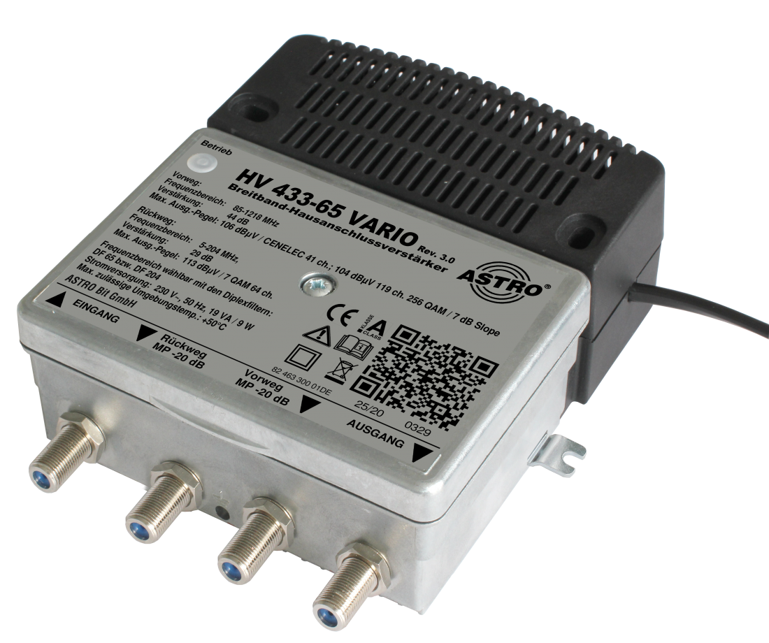 • Broadband amplifier with active variable return path 5-65 MHz or 5-204 MHz