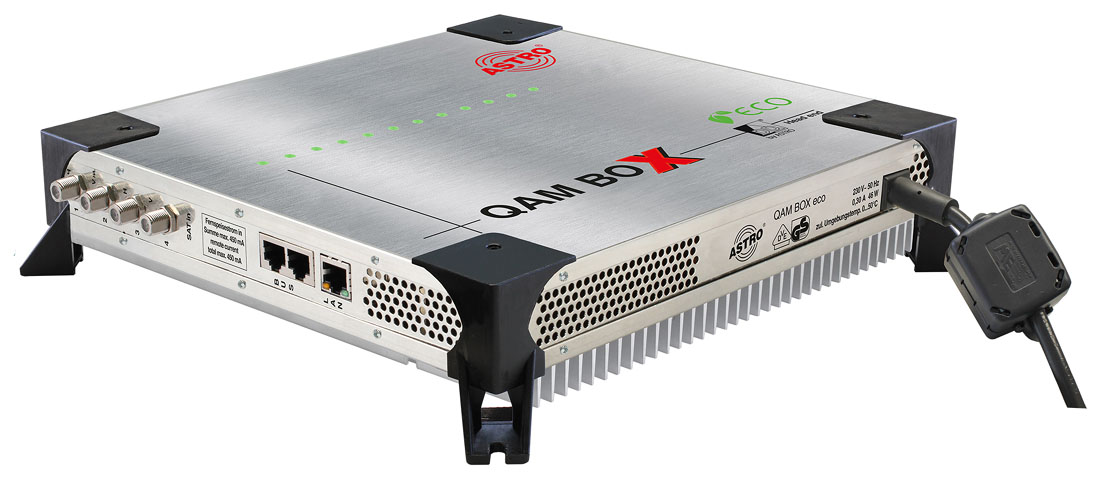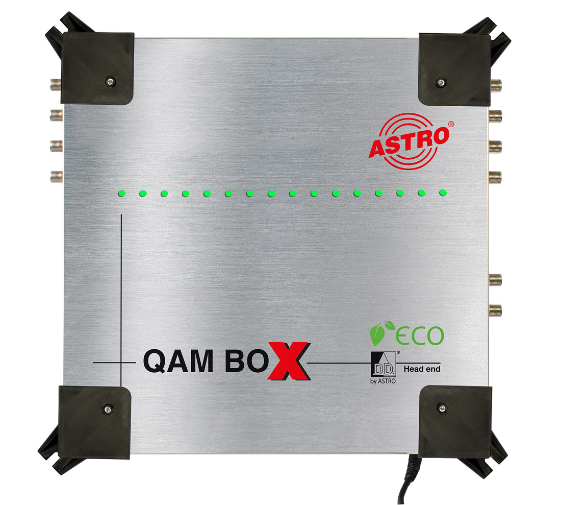QAM converter for 4 SAT bands with 16 DVB-S2 QAM channels, LCN, NIT, optional service filter license, web interface, compact and energy-efficient design.