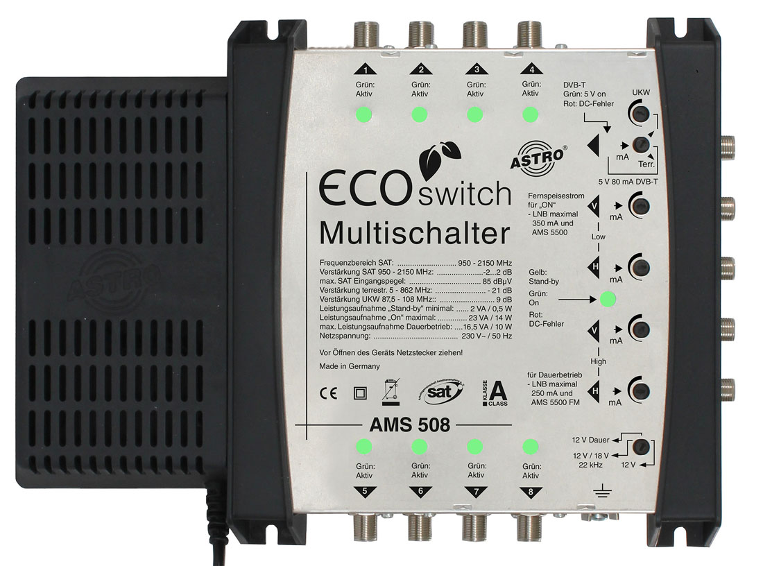 4 SAT-Ebenen + Terrestrik, 8 Teilnehmerausgänge