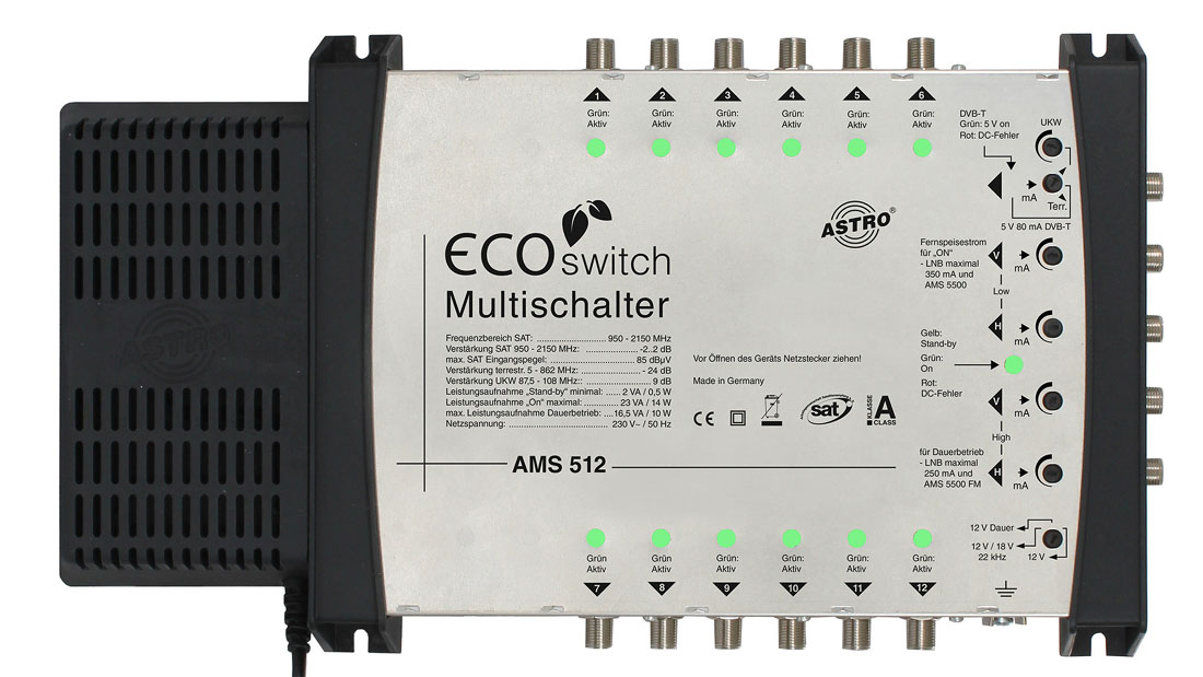 4 SAT-Ebenen + Terrestrik, 12 Teilnehmerausgänge