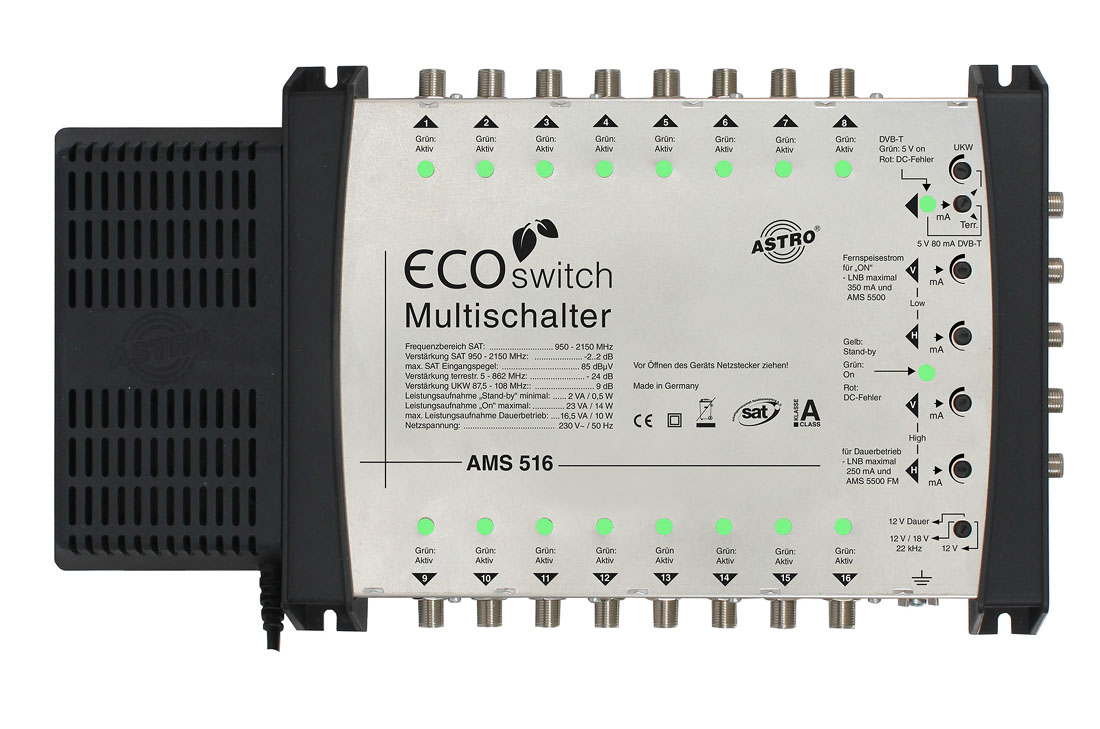 4 SAT-Ebenen + Terrestrik, 16 Teilnehmerausgänge