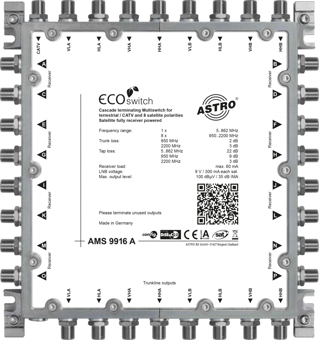 für 4 SAT-Ebenen + Terrestrik, 8 Receiverausgänge
