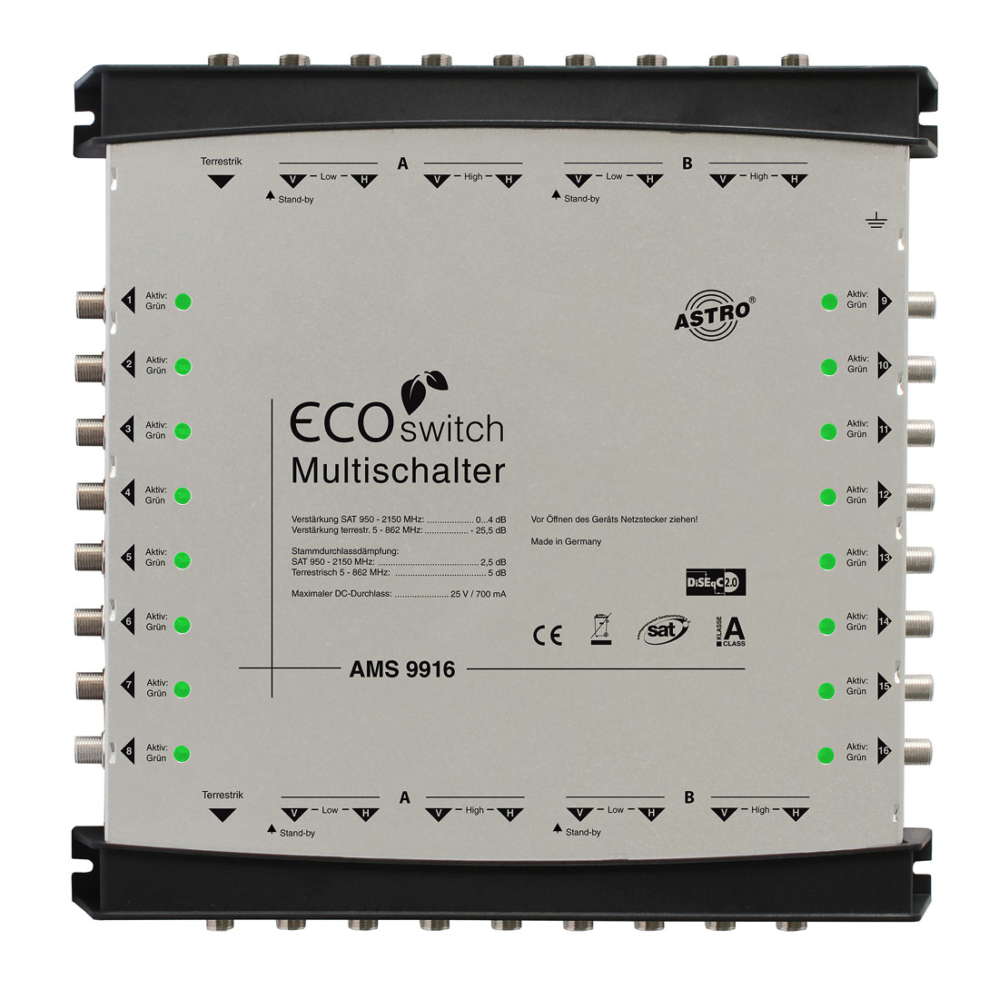 8 SAT-Ebenen + Terrestrik, 16 Receiverausgänge