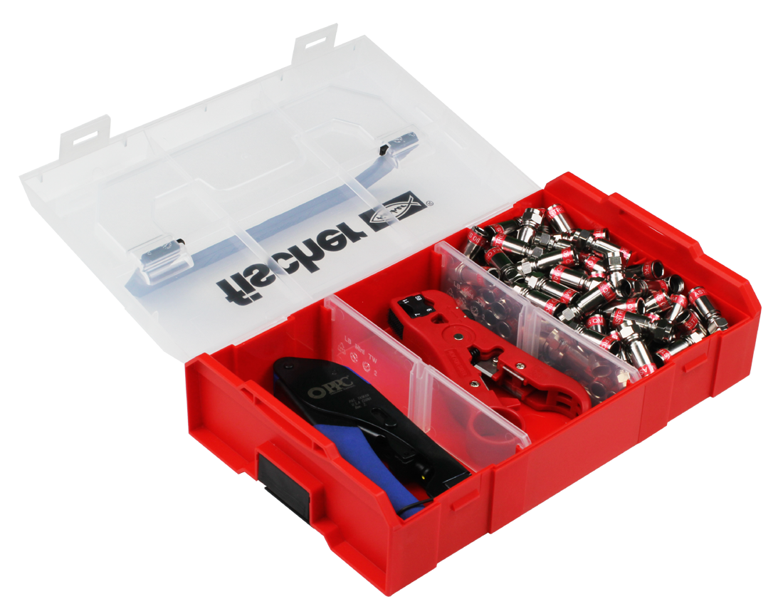 Kompressionsstecker-Set mit Koaxabsetzwerkzeug, 100 Quick-Kompressionsstecker, Kompressionszange