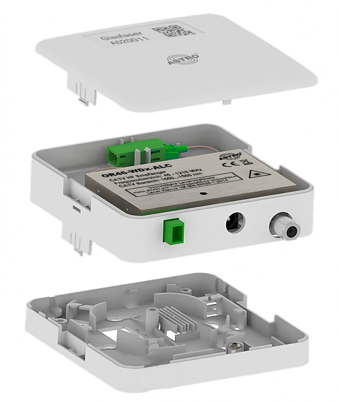 Kunststoffchassis für 4 Fasern mit Option für passive Funktion und optischem HF Empfänger für CATV