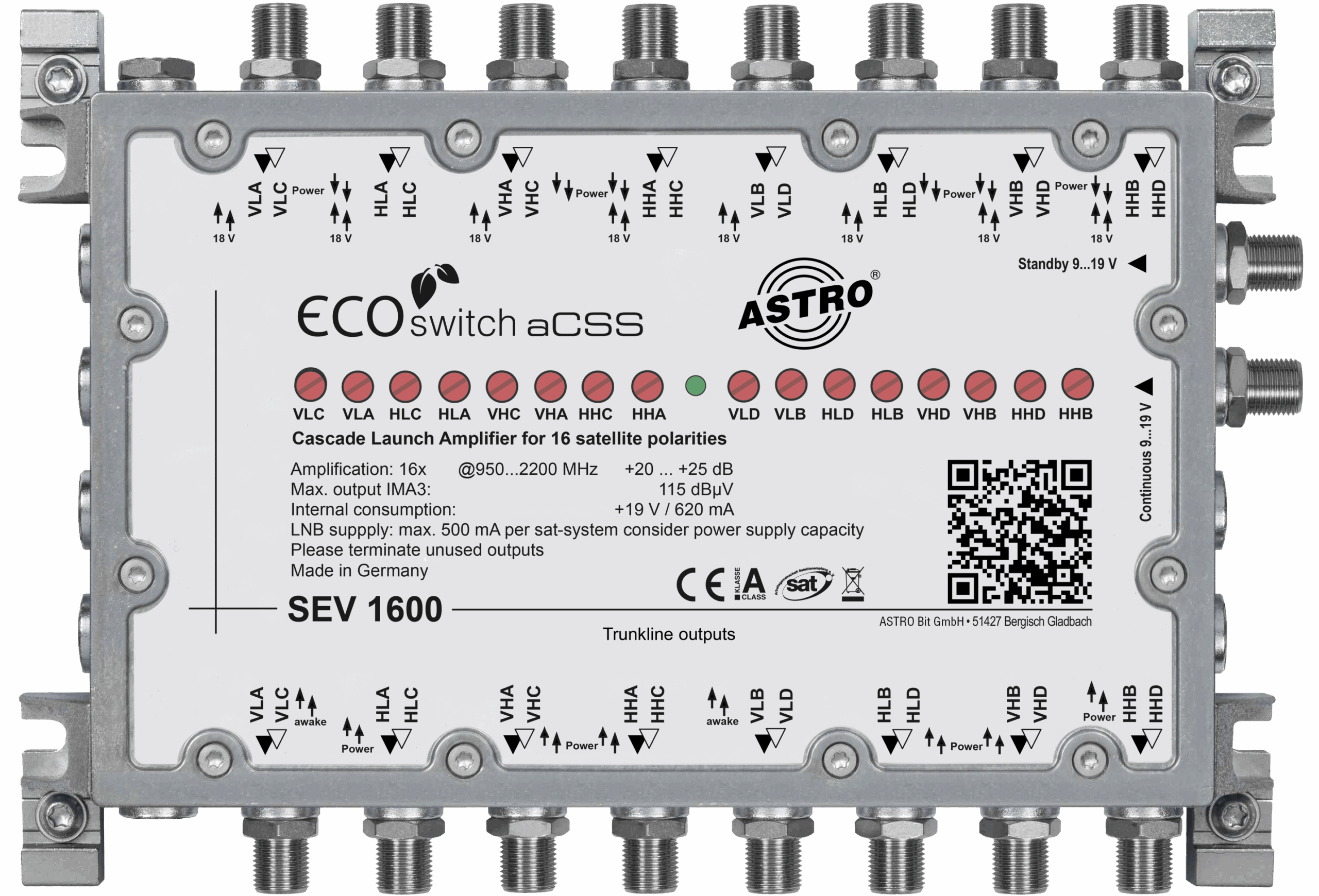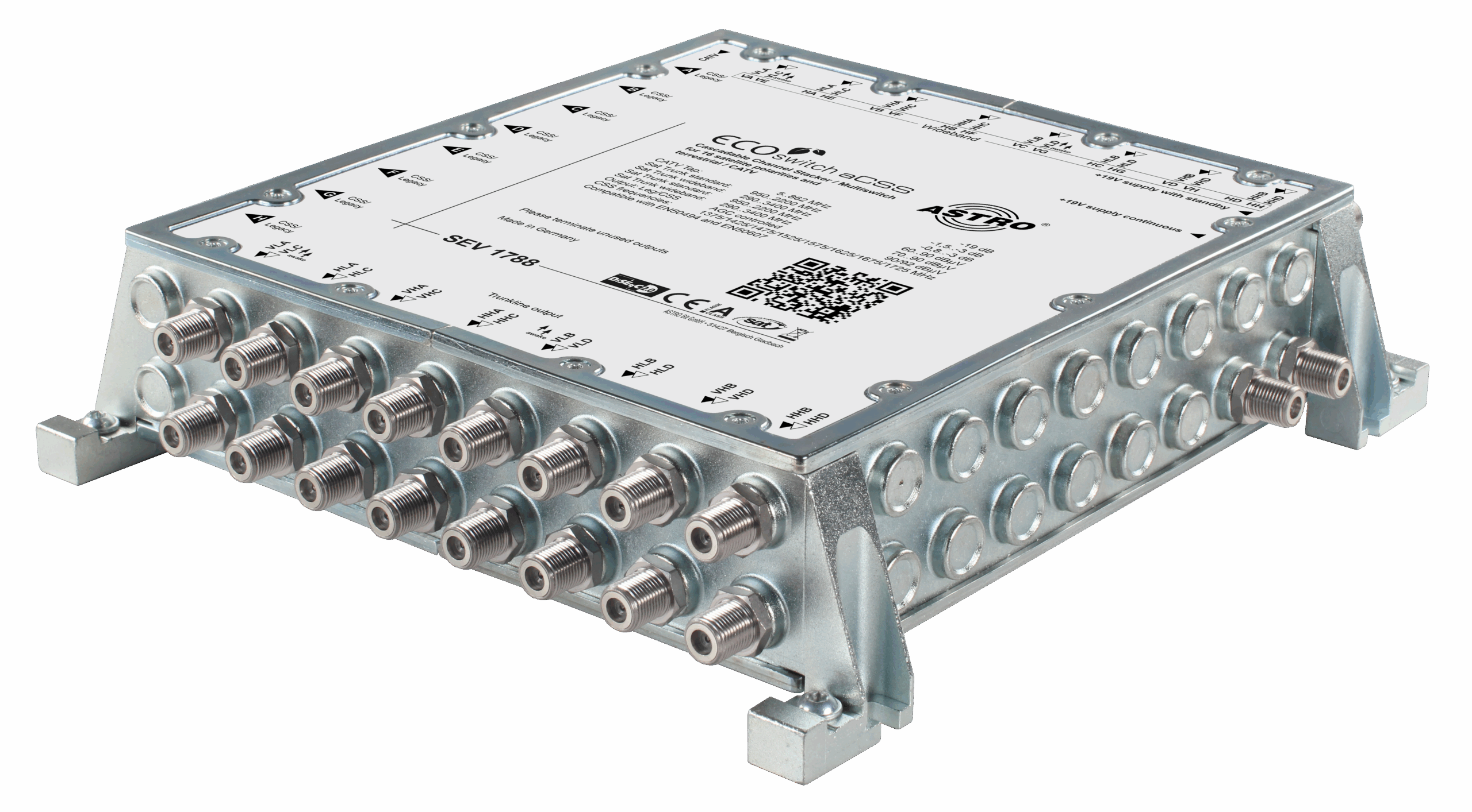 Einkabelumsetzer für 4 (8) Satelliten, 8 Ableitungen, 16 SAT-Durchschleifausgänge