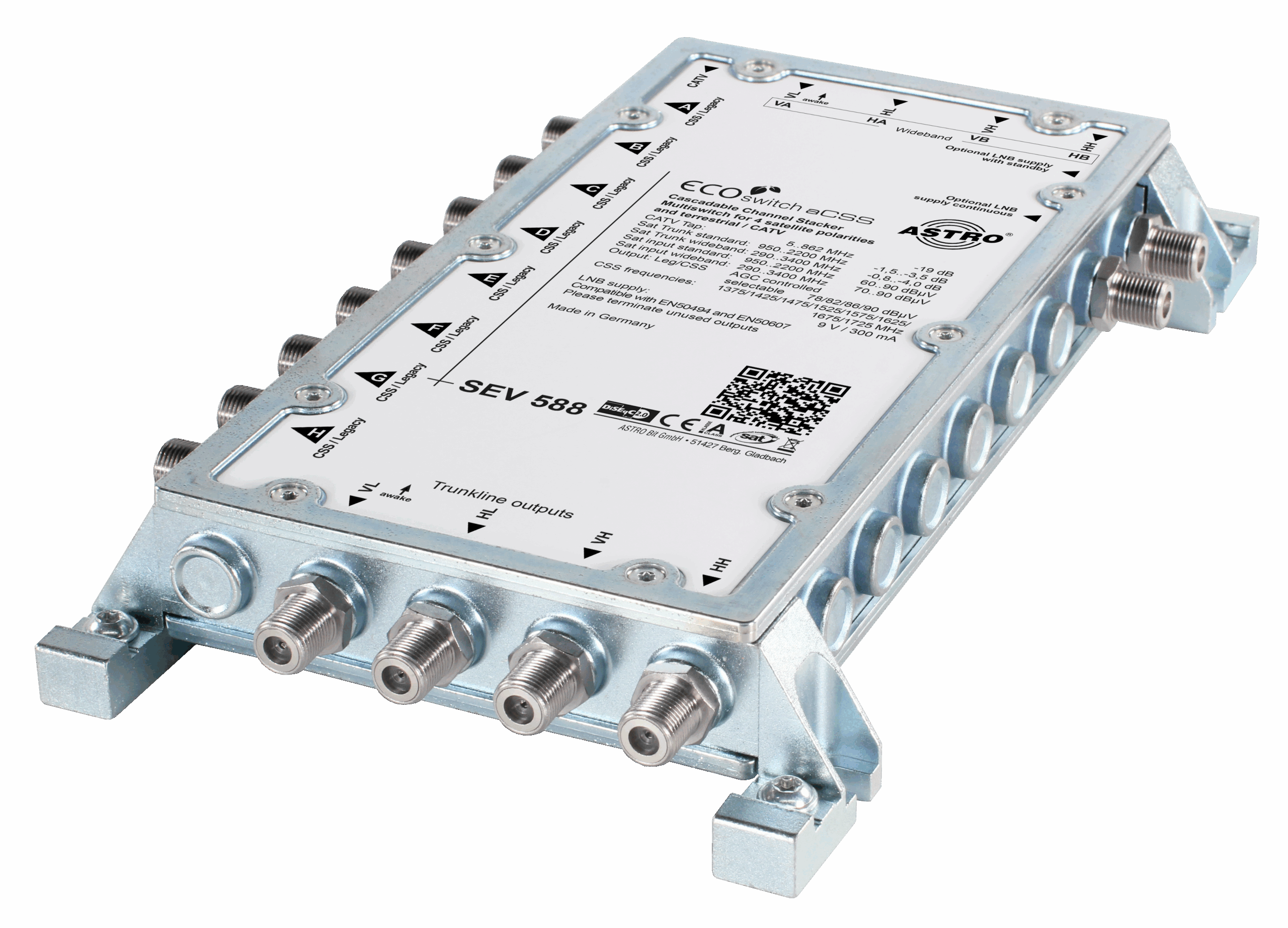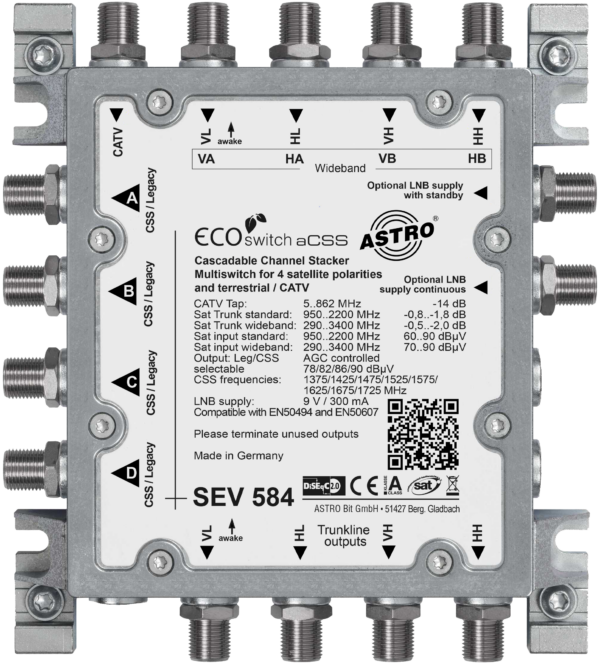 Einkabelumsetzer für 1 (2) Satelliten, 8 Ableitungen, 4 SAT-Durchschleifausgänge