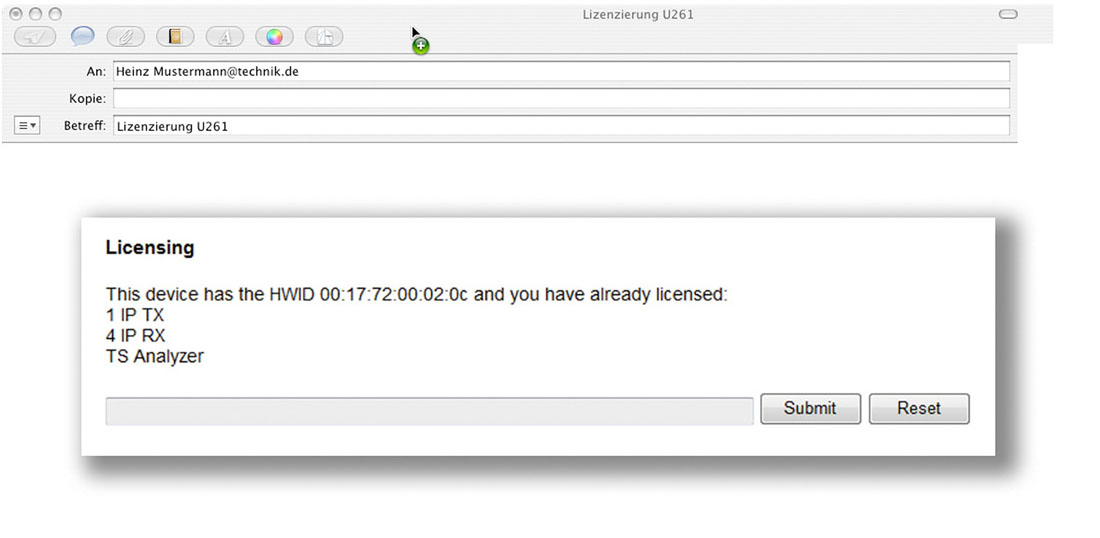 Lizenzkey für die Aktivierung des Transportstromanalyzers in den Geräten der U 261 / U 262